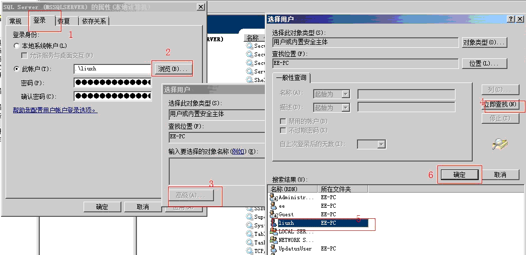 三、在主電腦上為SQLservice設(shè)置登錄用戶