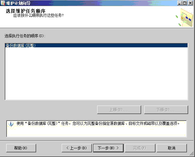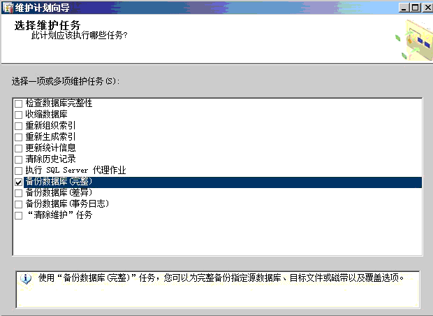 3.點擊確認(rèn),點擊下一步選擇“備份數(shù)據(jù)庫(完整)”