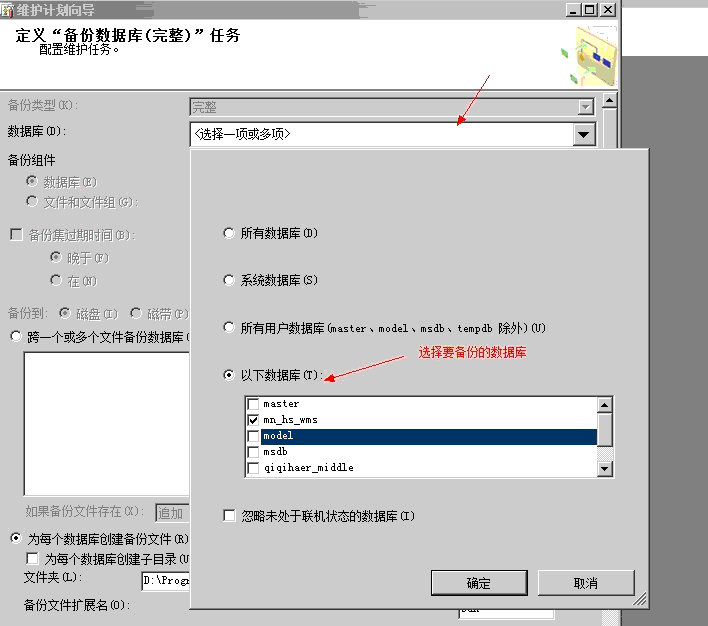 5.點擊下一步,選擇要備份的數(shù)據(jù)庫,和異地備份的路徑。